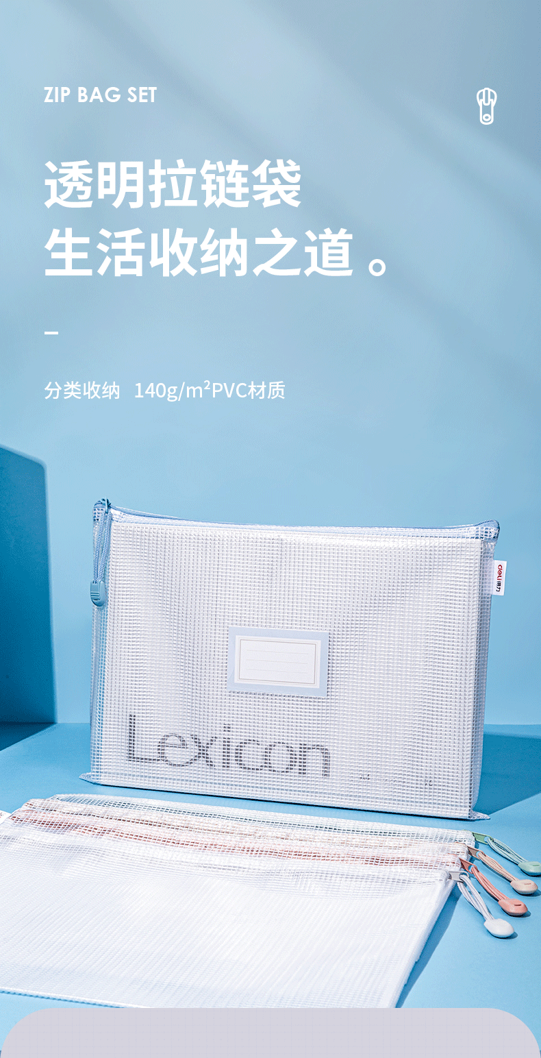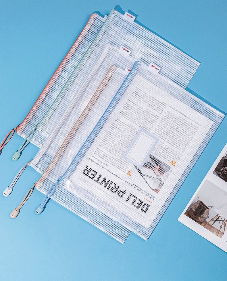商品名称:得力(deli)5只A4防水网格学科拉链袋 彩色资料袋文件袋 试卷财务凭证收纳可放置标签 莫兰迪色系混色63484