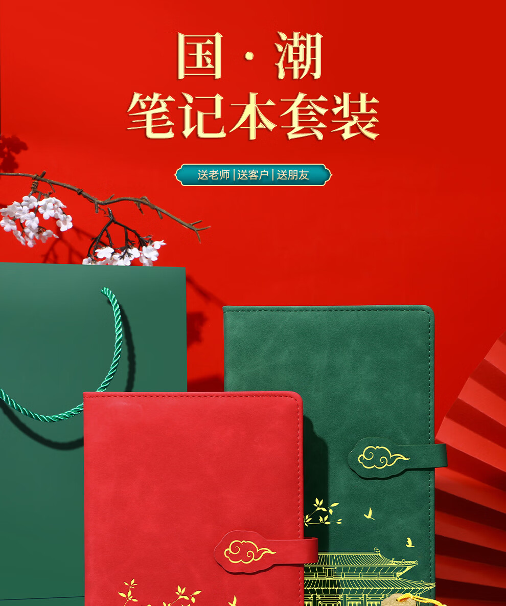 嘉然恒 国潮笔记本本子礼盒套装高颜值故宫中国风记事本商务伴手礼高档礼品毕业送老师同学礼物可定制 中国红