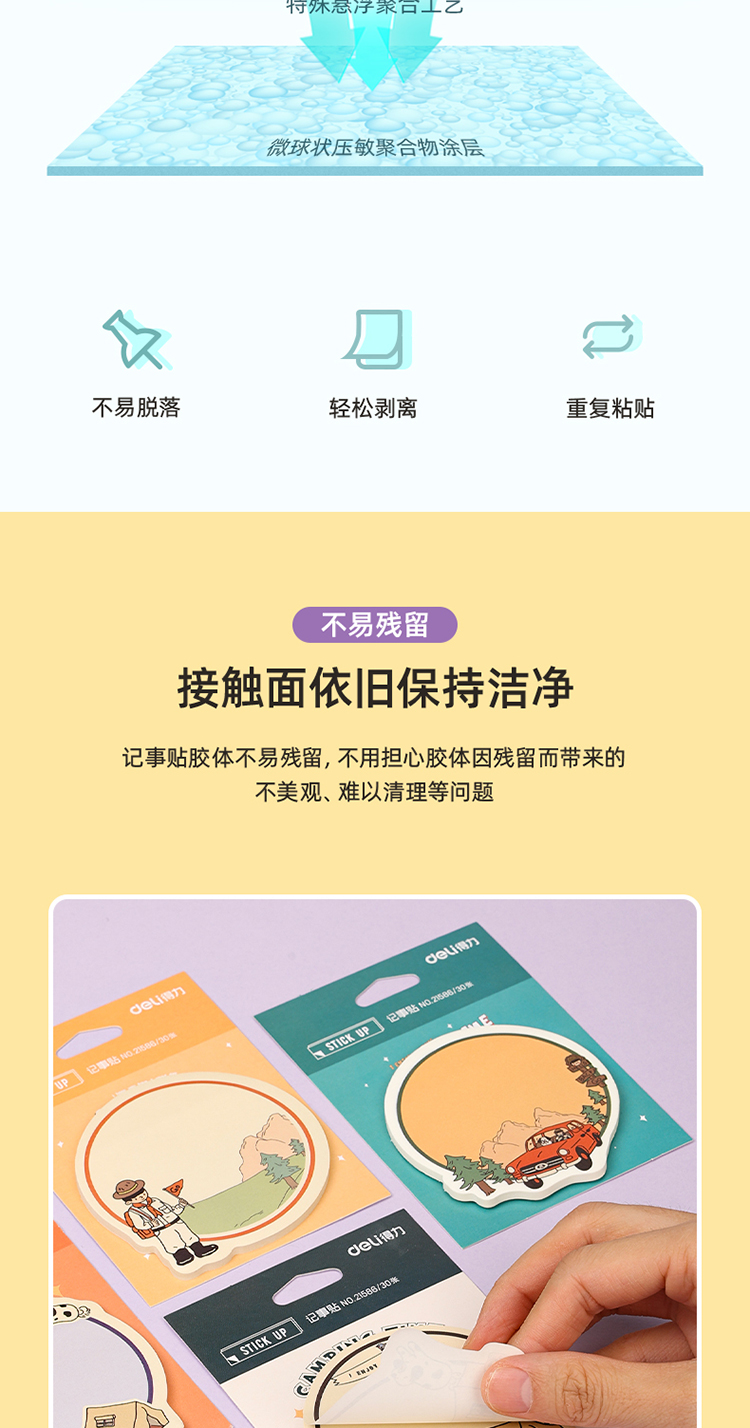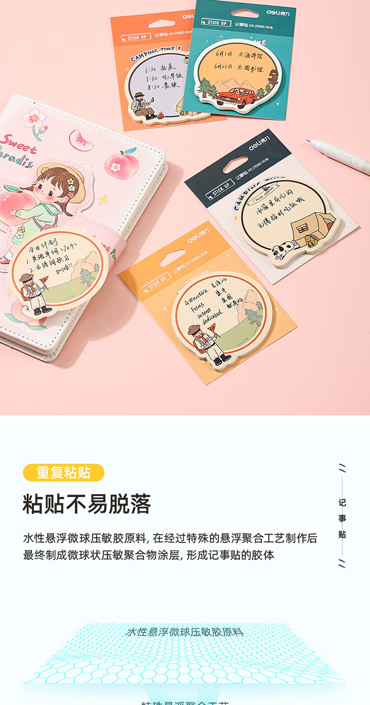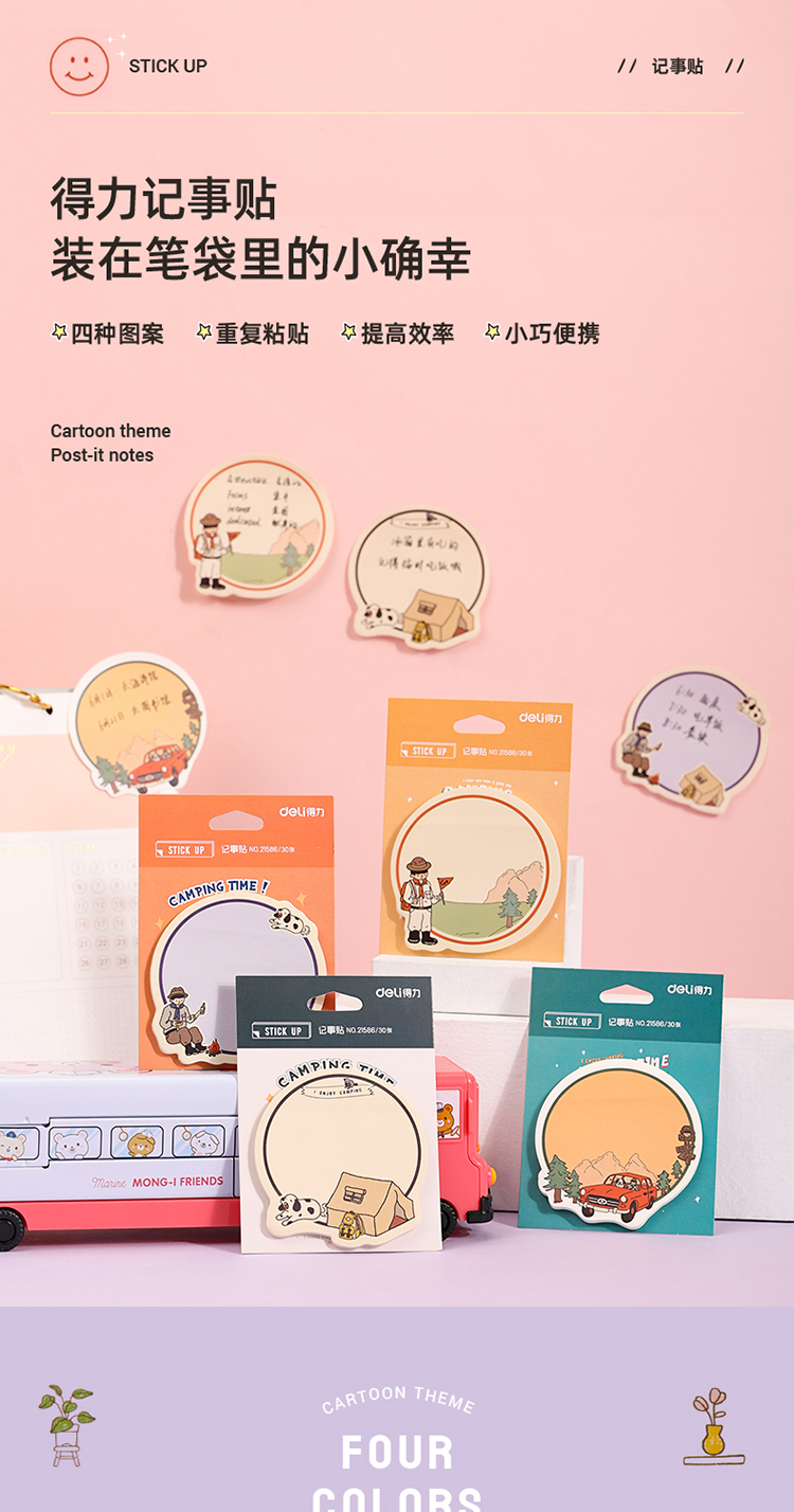 得力(deli)单本/30张记事贴 110*80mm便利贴便签纸贴纸 漫悠时光系列