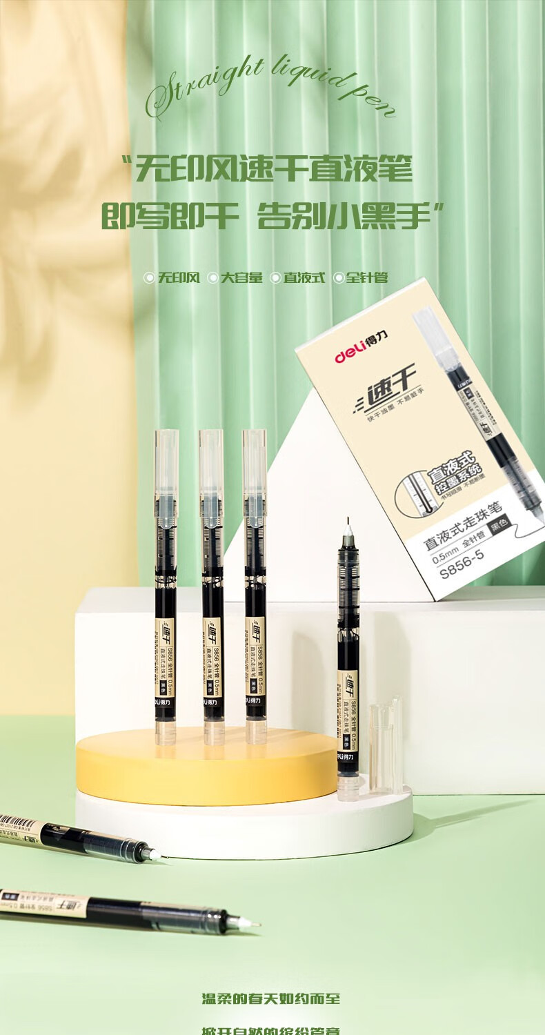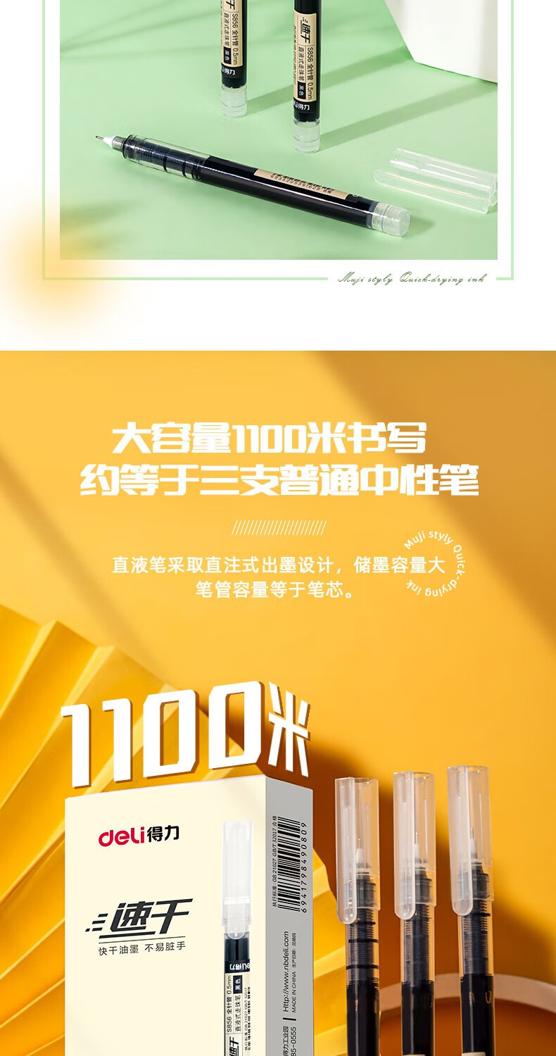 商品名称:得力(deli)直液笔速干笔签字笔 尖锥头全针管子弹头中性笔 商务办公学生水笔走珠笔 书写不脏手 2支装-V96【备考中性笔】