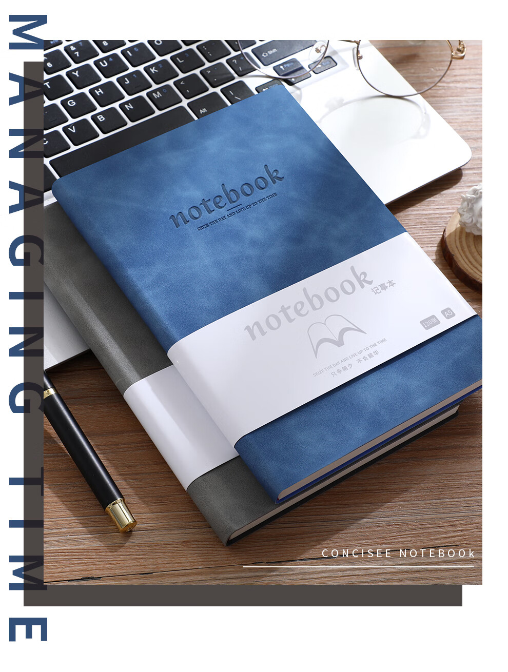 嘉然恒 笔记本本子高颜值定制A5商务软皮面记事本加厚笔记本子文具软面抄日记本工作日志会议记录本 深蓝色