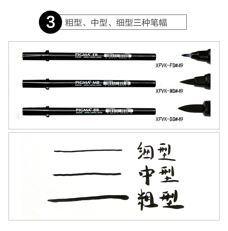 日本樱花(SAKURA) 秀丽笔 勾线软毛笔 书法笔大中小楷暑期学生练字绘画笔礼物 3支套装